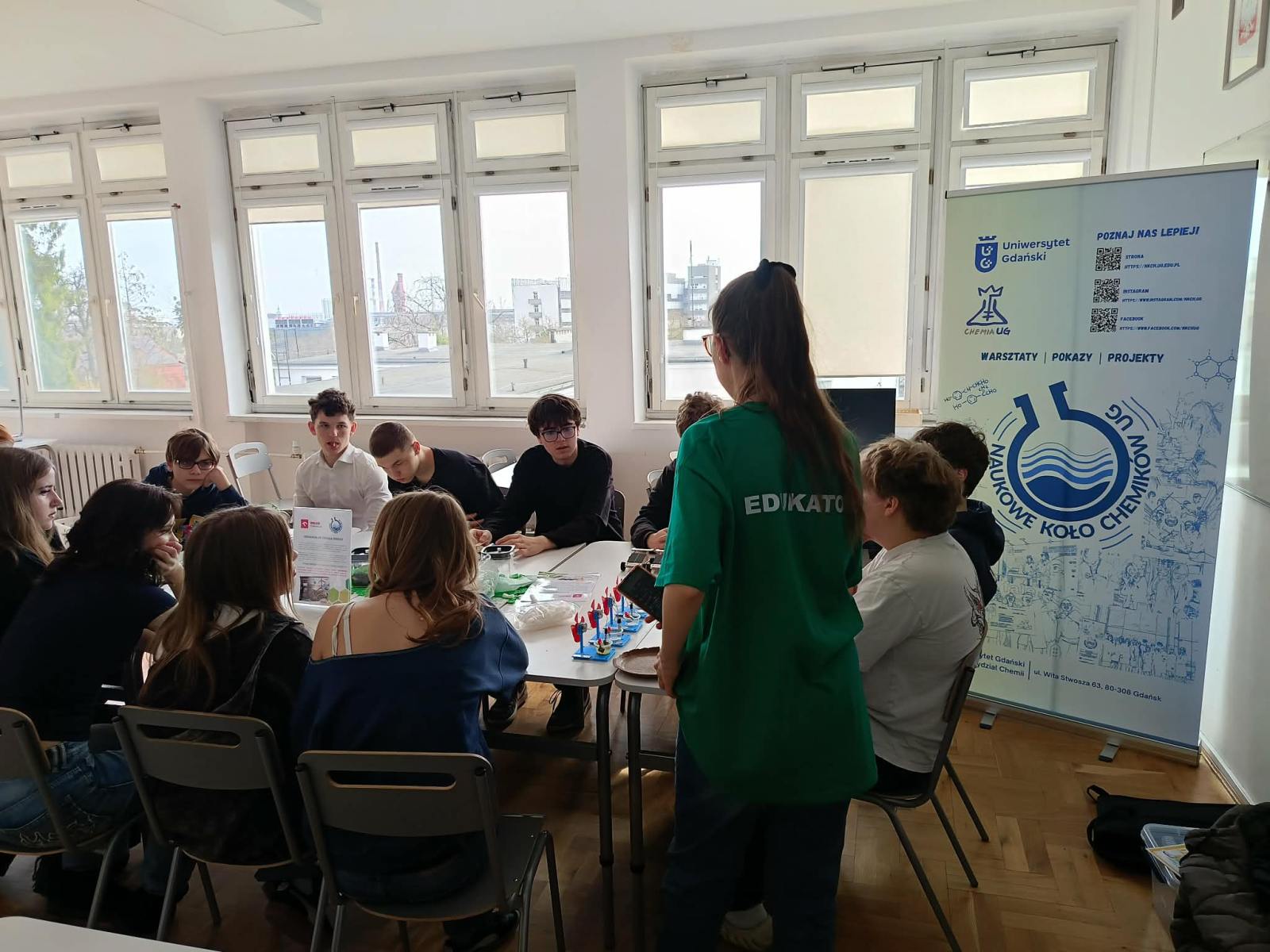 Dzięki współpracy z Uniwersytetem Gdańskim mieliśmy przyjemność gościć Panią dr hab. Agnieszkę Chylewską, prof. UG z Wydziału Chemii, która wygłosiła wykład dotyczący chemii klimatu: „Jak mała cząsteczka CO₂ wpływa na wielką planetę?”, Koło Naukowe Chemików UG z warsztatami #CHEMOBIL oraz Pana dr. Dawida Weisbrodta z Centrum Zrównoważonego rozwoju UG, który wygłosił wykład „Czy Ziemia ma jeszcze miejsce na nasze śmieci?” a także poprowadził warsztaty terenowe „Leśna bioróżnorodność”.
