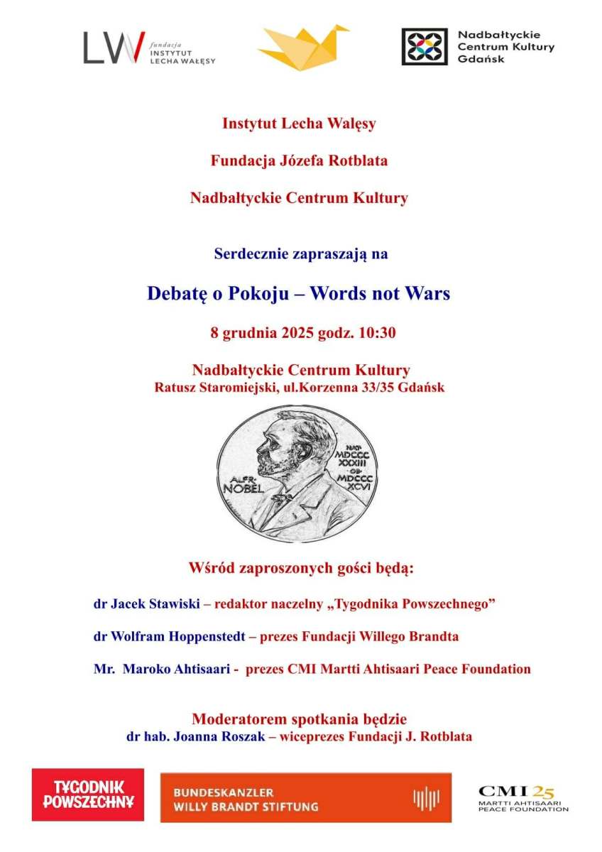 Spotkanie zostało zorganizowane przez: Instytut Lecha Wałęsy, Fundację Józefa Rotblata oraz Nadbałtyckie Centrum Kultury