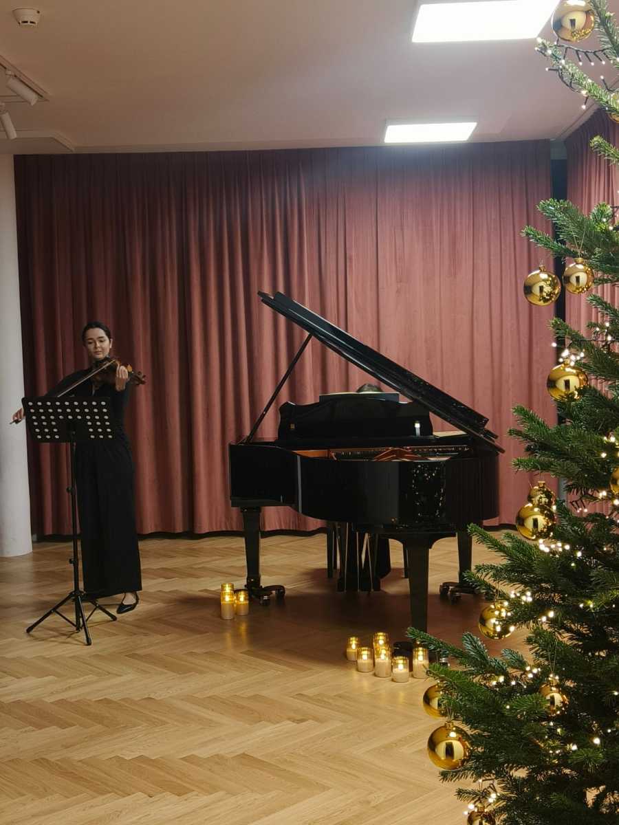 W programie znalazły się utwór muzyki klasycznej na skrzypce i fortepian w wykonaniu pedagożki i studentki Akademii Muzycznej w Gdańsku oraz przeboje świąteczne w wykonaniu osób uczących się w ULO.