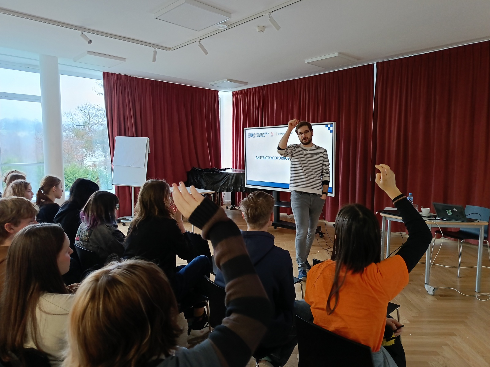 W poniedziałek 24 listopada gościliśmy Pana dr. Tomasza Swebockiego z Politechniki Gdańskiej, pracownika Instytutu Nanotechnologii i Inżynierii Materiałowej WFTiMS, który opowiedział nam o tym jak inżynierami materiałowa i nanotechnologia wspiera medycynę w walce z antybiotykoopornością. W spotkaniu wzięły udział klasy 1Bc, 1Bm, 2B i 3B.