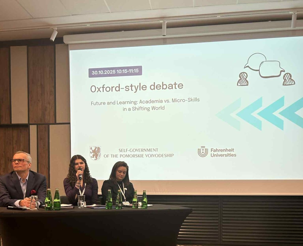 30 października Natalia Jackiewicz z klasy 3c uczestniczyła w wyjątkowej debacie w języku angielskim zorganizowanej w ramach Annual Forum – EUSBSR, czyli Corocznego Forum EUSBSR (Strategii Unii Europejskiej dla Regionu Morza Bałtyckiego). Debatę przygotowały Uczelnie Fehrenheita, a drużyny zasiliły akademicy, przedstawiciele rynku pracy i uczniowie szkół ponadpodstawowych. Natalia reprezentowała stronę propozycji i wspólnie z drużyną broniła tezy „Full-time academic studies are no longer the most effective path to building the skills needed for success and societal contribution in a rapidly changing world.” Drużyna propozycji okazała się mocniejsza w swej argumentacji. Debata zgromadziła międzynarodowe audytorium, które uzupełniła delegacja uczniów z ULO pod opieką dr Kamili Cempy. Miron Walewski z kl. 3e, poza pełnieniem roli osoby kontrolującej czas przemówień debatantów, zabrał cenny głos w dyskusji. Jesteśmy z Was dumni Pszczoły. Ponownie przynieśliście dumę ULO! Dziękujemy organizatorom za zaproszenie do współpracy.