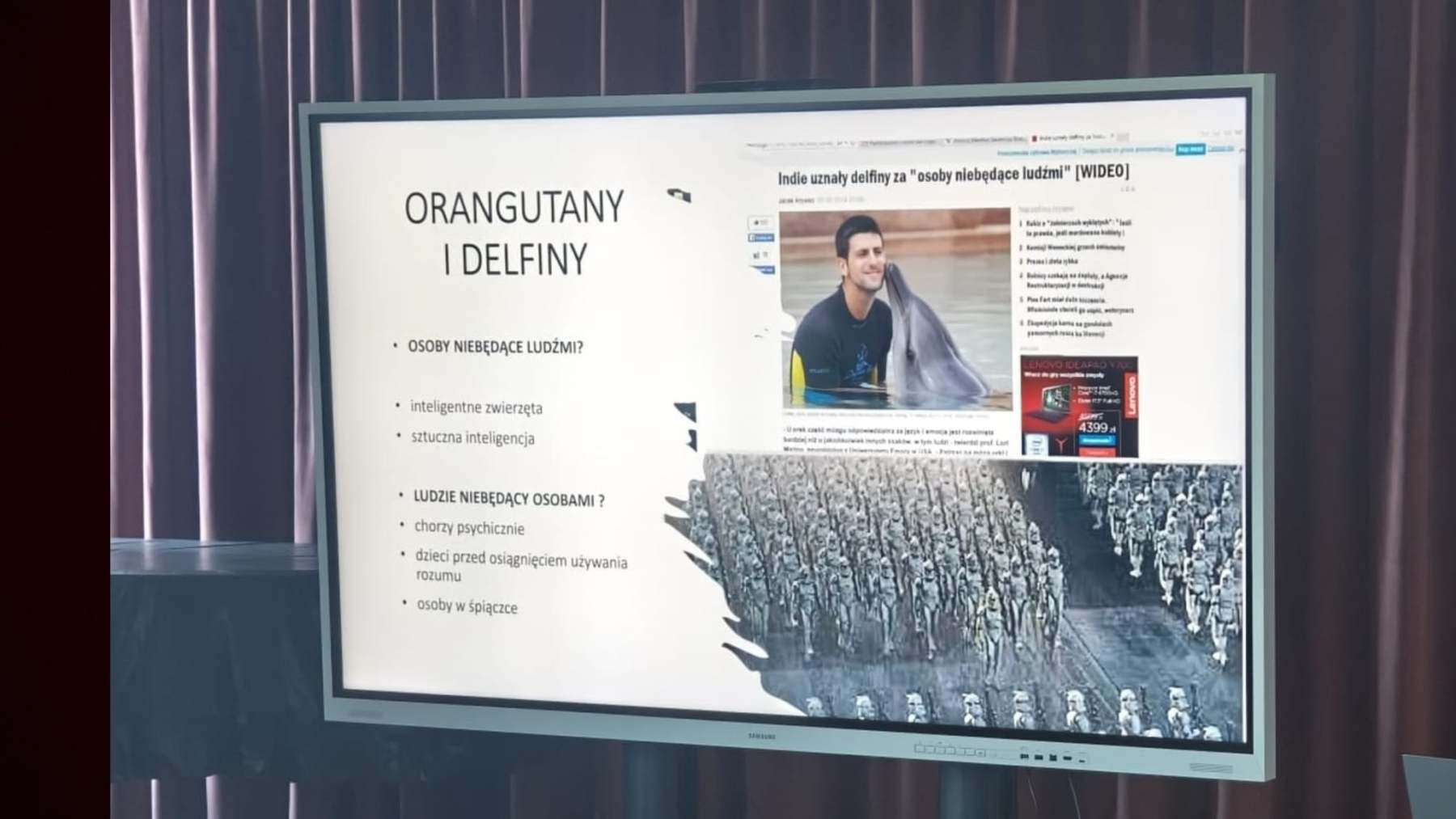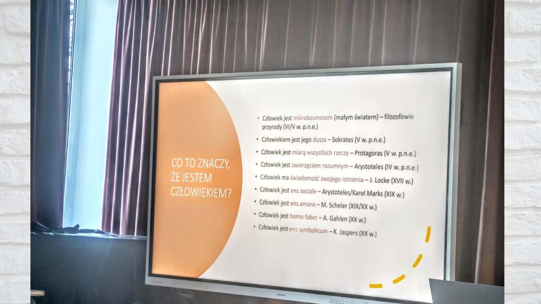 A zatem i my, korzystając ze skarbnicy wiedzy pani Profesor, oddaliśmy się przyjemnościom introspekcji i samorefleksji. Posługiwali nam tytani myśli starożytnej, od Arystotelesa i Platona, poprzez cesarza Marka Aureliusza, na luminarzach nowożytnej filozofii skończywszy. Towarzyszyły w drodze delfiny i orangutany. W orszaku osób ludzkich i animalnych, zdobyliśmy kolejne stopnie wtajemniczenia we wspinaczce na Olimp czempionów wiedzy i kultury.