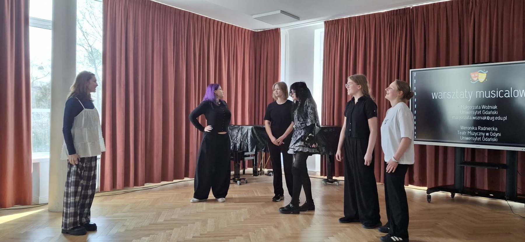 13 kwietnia uczniowie należący do koła teatralnego Drama Bees mieli okazję uczestniczyć w warsztatach teatralnych. Zajęcia te poprowadzone zostały przez Panie Małgorzatę Woźniak oraz Weronikę Radniecką. Pani Małgorzata z Zakładu Badań nad Sztukami Scenicznymi Uniwersytetu Gdańskiego prowadzi na co dzień zajęcia na Amerykanistyce i Zarządzaniu Instytucjami Artystycznymi. Pani Weronika jest natomiast aktorką Teatru Muzycznego w Gdyni. Nasze gościnie, jako ekspertki od musicali, wprowadziły nas nie tylko w w świat gry aktorskiej ale i piosenki oraz jej znaczenia w musicalu. Ponadto, była rozgrzewka całego ciała, a zwłaszcza aparatu mowy. Uczniowie wykonywali ćwiczenia emisji głosu oraz odgrywali spontaniczne etiudy. Było to połączenie nauki z dobrą zabawą. Opiekun koła, Pani Joanna Betscher oraz wszystkie Drama Bees jeszcze raz serdecznie dziękują Paniom Małgorzacie Woźniak oraz Weronice Radnieckiej. Podziękowania Składamy również Pani dr Marii Fengler, Zastępczyni Dyrektora ds. Kształcenia na Instytucie Anglistyki I Amerykanistyki UG, która pomogła nam w organizacji warsztatów.